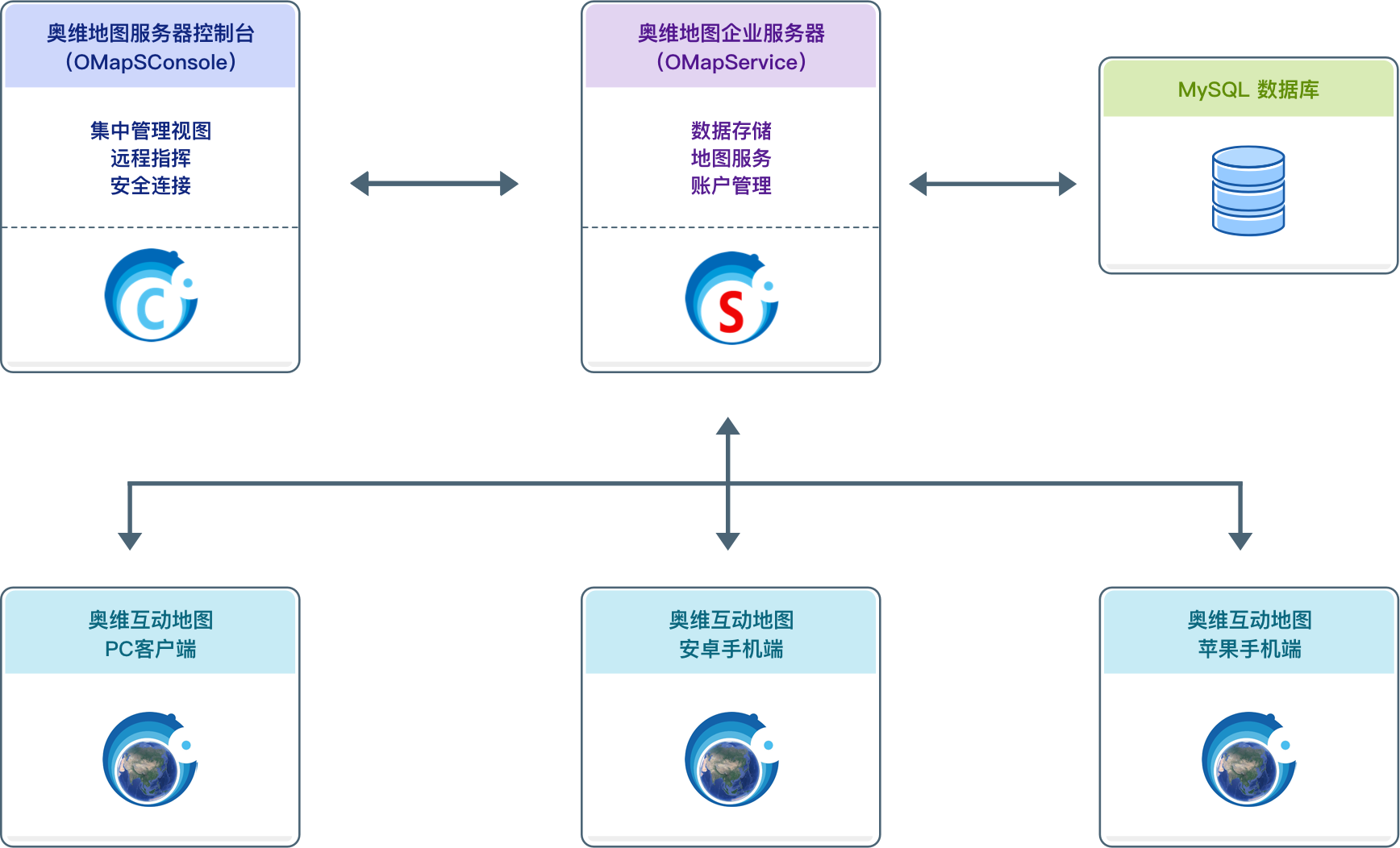 奧維互動(dòng)地圖企業(yè)方案是基于客戶(hù)自部署的奧維互動(dòng)地圖服務(wù)器套件,為企業(yè)用戶(hù)提供的全方位解決方案。通過(guò)允許企業(yè)自己架設(shè)服務(wù)器,并由企業(yè)自主來(lái)運(yùn)維,可實(shí)現(xiàn) 安全的數(shù)據(jù)管理,集約化的數(shù)據(jù)共享管理,嚴(yán)格的權(quán)限控制,方便的遠(yuǎn)程協(xié)助,多級(jí)拓?fù)浣Y(jié)構(gòu),企業(yè)內(nèi)網(wǎng)部署,集中授權(quán),它由服務(wù)器組件,控制臺(tái)組件,數(shù)據(jù)庫(kù)組件以及客戶(hù)端組成。