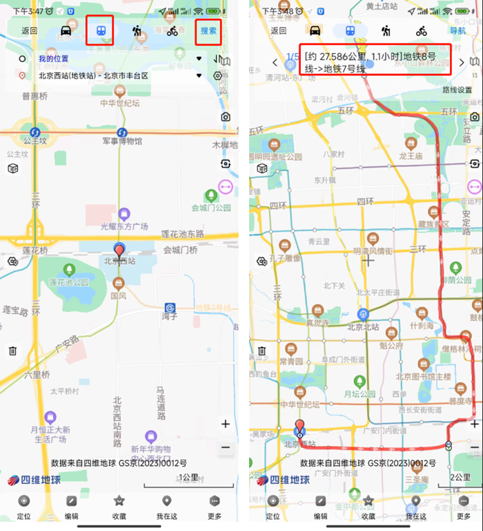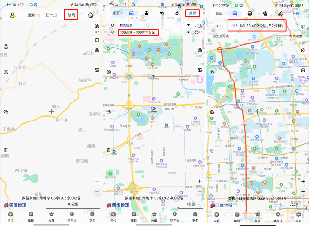①輸入地名地址搜索起止位置