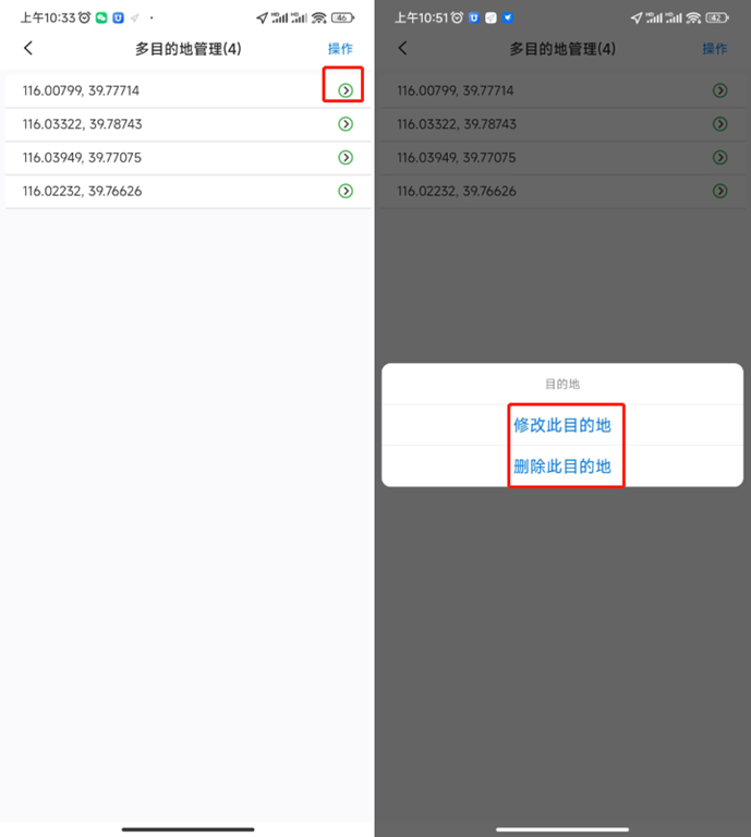 可對添加的目的地進(jìn)行管理,如修改、刪除、編輯、添加目的地。