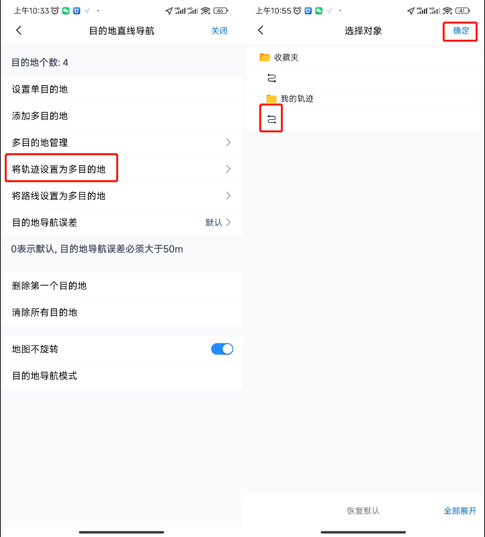 (3)將軌跡設(shè)置為多目的地