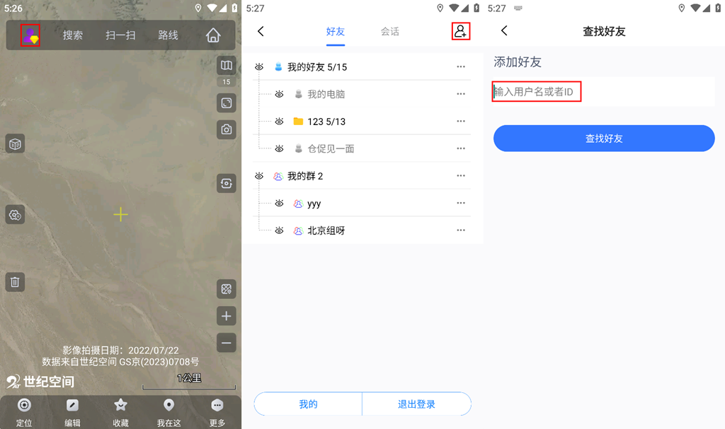 在奧維互動(dòng)地圖中,用戶可互相添加為好友,獲取好友的位置信息,記錄好友軌跡。