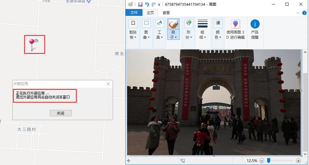 設置完成后,在地圖上,按住Ctrl鍵,點擊標簽,即可調(diào)用畫圖工具打開圖片文件。關(guān)閉畫圖工具后,會自動關(guān)閉[外部應用]窗口。
