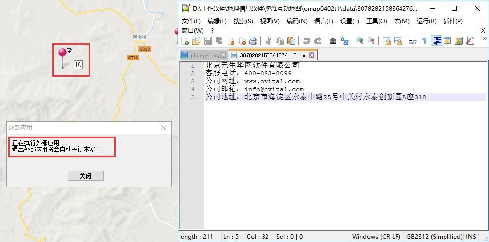 設置完成后,在地圖上,按住Ctrl鍵,點擊標簽,即可調(diào)用notepad++以只讀方式打開TXT文件。關(guān)閉TXT文件后,會自動關(guān)閉[外部應用]窗口。