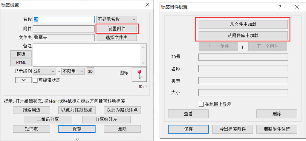 在地圖上,點擊需要添加附件的標簽,點擊未標題-2按鈕,進入[標簽設置]窗口。