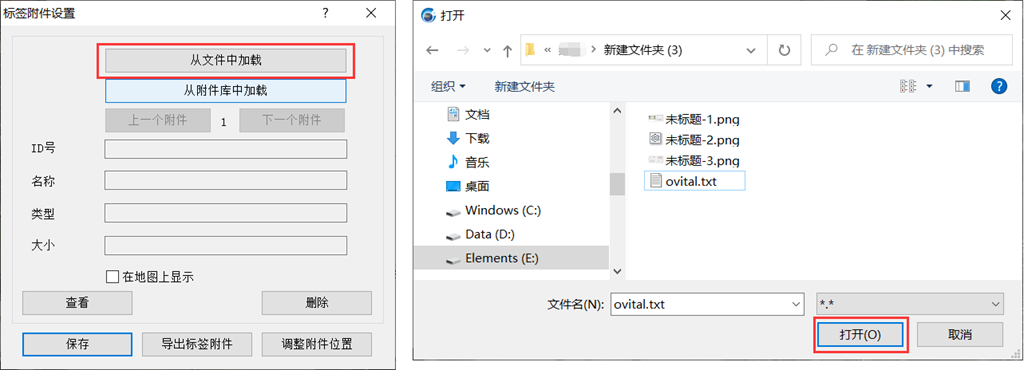 在[標簽附件設置]窗口中,點擊【從文件中加載】按鈕,選擇需要作為標簽附件的TXT文本,點擊【打開】按鈕,即可。