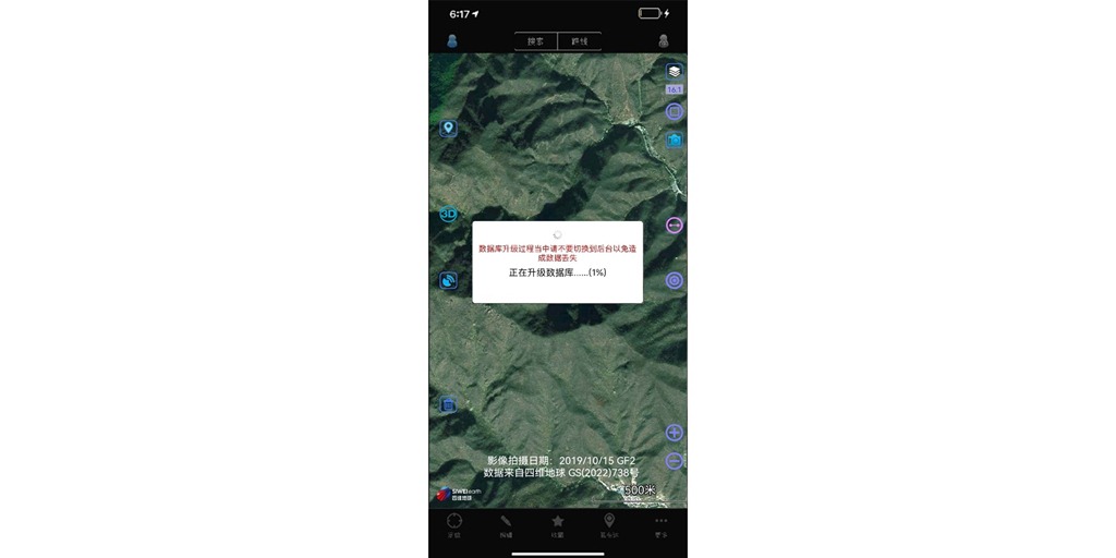 用戶在使用奧維iOS版的過程中,啟動奧維,可能會出現(xiàn) “正在升級數(shù)據(jù)庫”的提示。當(dāng)然,如果能快速的升級到100%那么是正常的;如果一直停留在1%的狀態(tài)(如下圖所示),那么該如何處理?
