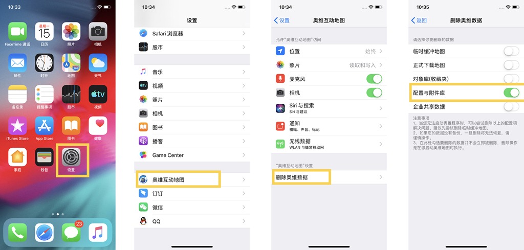 在手機(jī)桌面上,點(diǎn)擊【設(shè)置】,點(diǎn)擊【奧維互動地圖】,點(diǎn)擊【刪除奧維數(shù)據(jù)】,開啟【配置與附件庫】,即可。