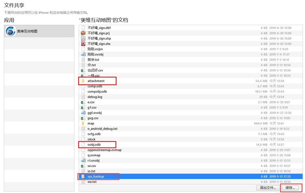 連接成功后,點(diǎn)擊wps2按鈕,點(diǎn)擊【文件共享】,找到奧維互動地圖,將attachment、oobj.odb、sys_backup等文件或者文件夾保存到電腦上。