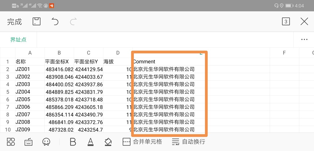 (2)其次,對坐標(biāo)文件進(jìn)行編輯,并將Excel表格另存為CSV格式文件。