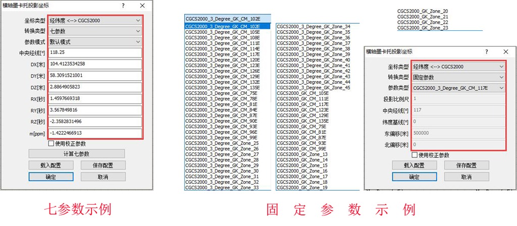 左側(cè)為七參數(shù),右側(cè)為固定參數(shù)。