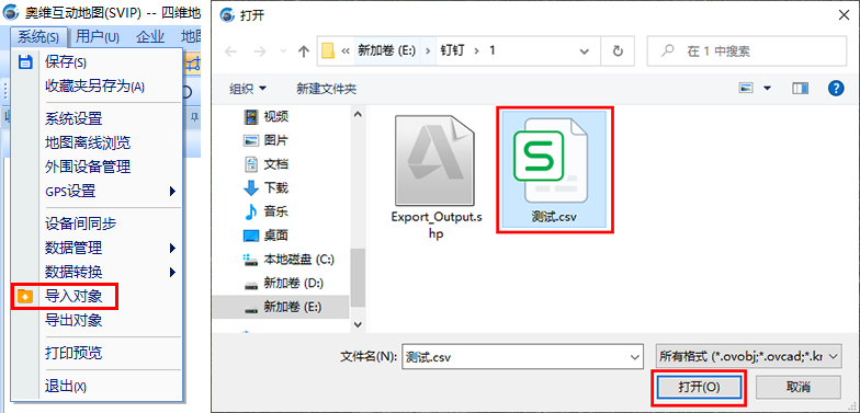 在奧維電腦端,點擊[系統(tǒng)]菜單,點擊【導(dǎo)入對象】,選擇需要導(dǎo)入的文件,點擊【打開】。