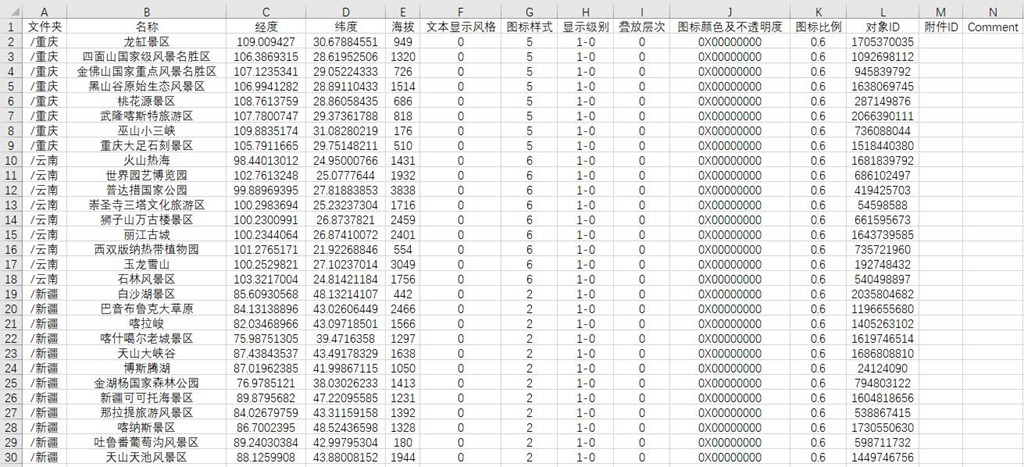 在奧維互動地圖中,用戶可導(dǎo)入Excel表格中的經(jīng)緯度坐標(biāo)及海拔數(shù)據(jù),生成標(biāo)簽。支持導(dǎo)入的經(jīng)緯度坐標(biāo)包括CGCS2000地理坐標(biāo)、GCJ-02坐標(biāo)(中國GCJ -02經(jīng)緯度)和BD-09坐標(biāo)(百度坐標(biāo))。