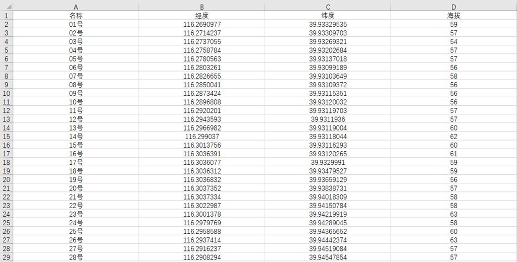 (1)首先,對坐標(biāo)文件進(jìn)行編輯,并將Excel表格另存為CSV格式文件。