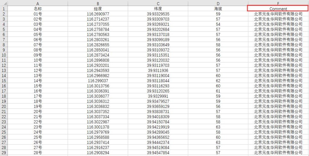 若用戶的經(jīng)緯度坐標(biāo)為CGCS2000地理坐標(biāo),且只有名稱、經(jīng)度、緯度、海拔這幾個字段,那么排列順序就為名稱、經(jīng)度、緯度、海拔。如下圖所示: