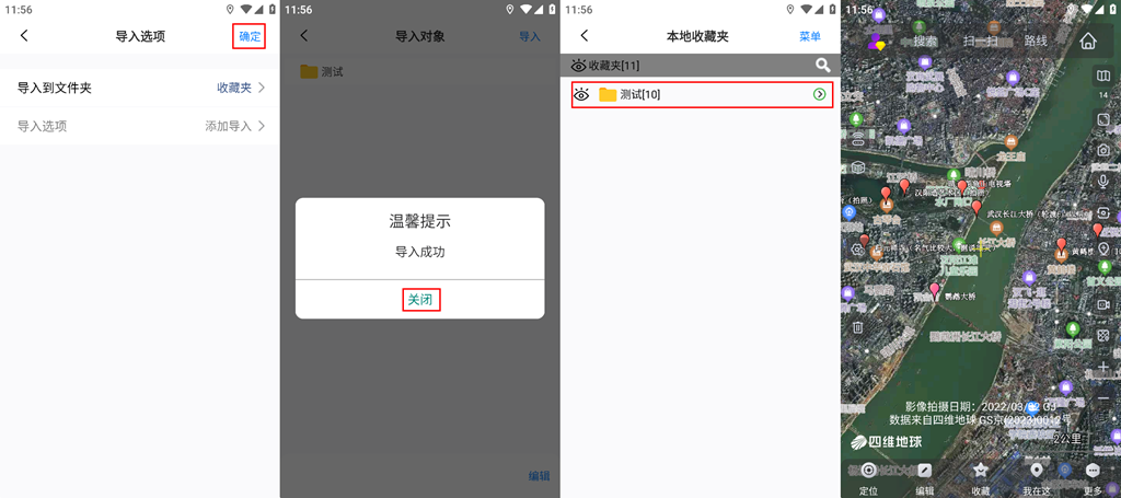 進(jìn)入[導(dǎo)入選項]頁面,點擊【確定】,執(zhí)行導(dǎo)入。導(dǎo)入完成后,數(shù)據(jù)會保存在收藏夾中,顯示在地圖上。