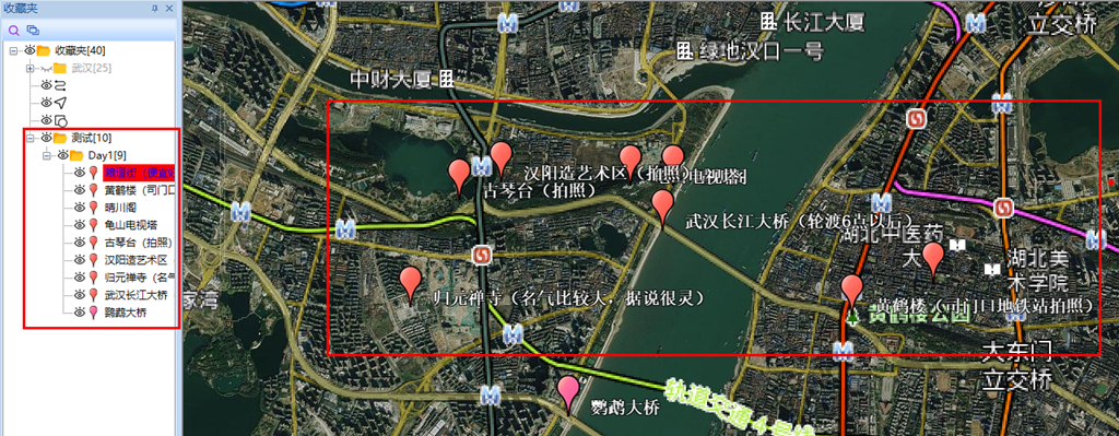 完成后,導(dǎo)入的坐標(biāo)點會自動生成奧維標(biāo)簽對象,保存在收藏夾中,顯示在地圖上。