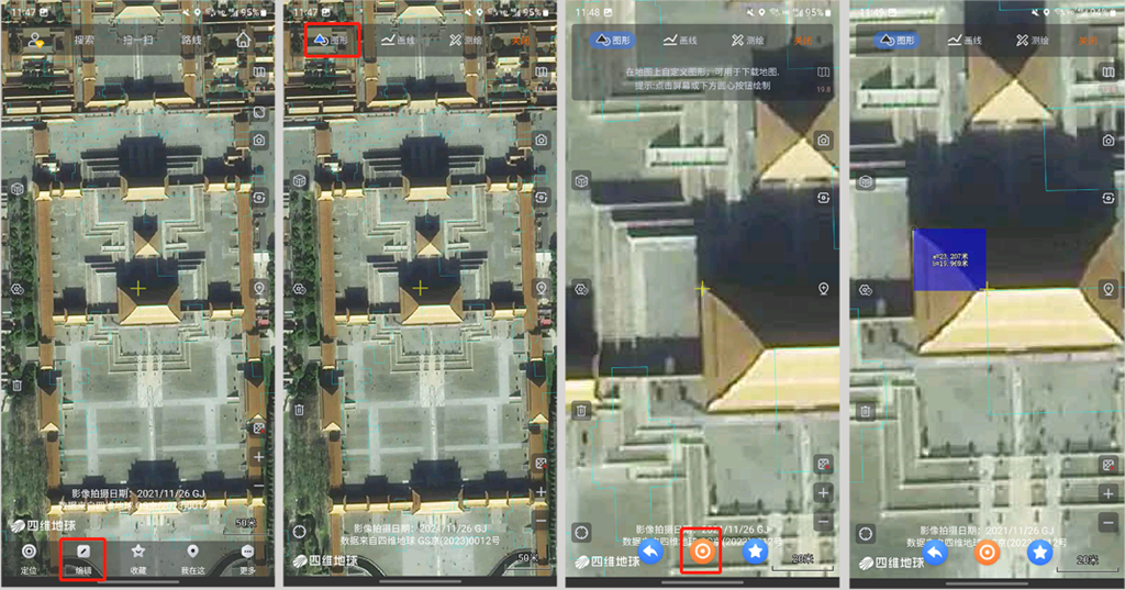通過放大,縮小,移動地圖等操作可將操作面板的“圓圈”按鈕移動到參照對象處。