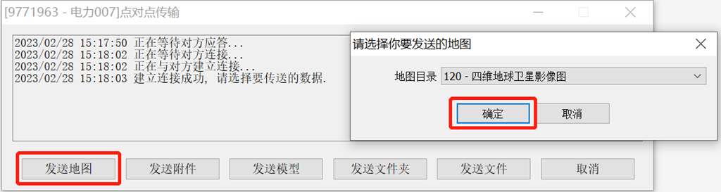 在電腦端的[點對點傳輸]頁面,點擊【發(fā)送地圖】,[地圖目錄]選擇您要發(fā)送離線地圖,點擊【確定】。