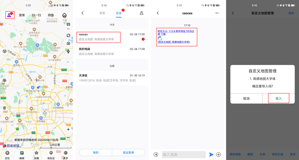 1、將電腦端的離線地圖發(fā)送到手機端或者好友