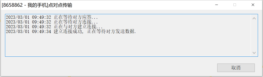 同時,電腦端(或好友的奧維)彈出提示“請求點對點傳輸”,點擊【是】,等待窗口提示“建立連接成功”。