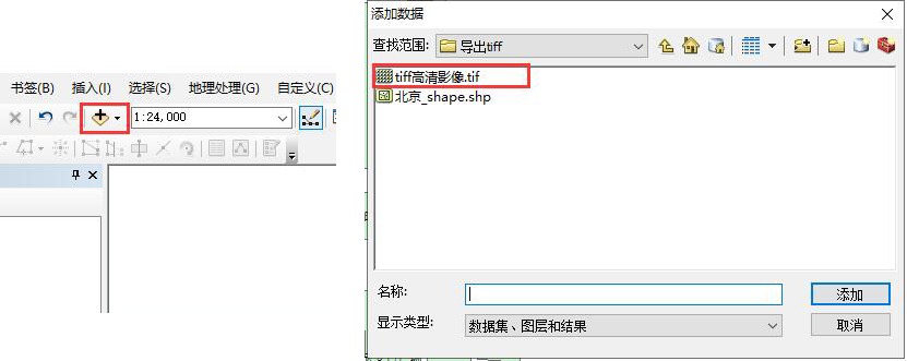 在ArcMap中,點擊按鈕,進(jìn)入tiff影像的目錄,選擇影像圖,點擊【添加】。