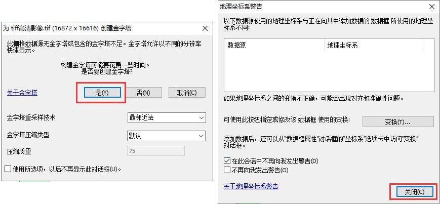 若彈出地理坐標(biāo)系的警告,請忽略,點擊【關(guān)閉】,即可。
