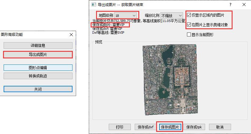 點擊【導(dǎo)出成圖片】,勾選【僅顯示區(qū)域內(nèi)的圖片】,設(shè)置地圖級別。