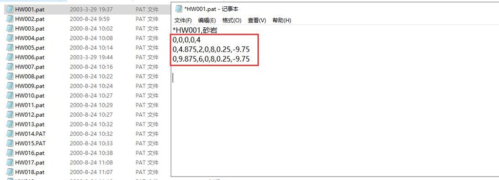CAD的圖案文件為.pat文件,您可以使用記事本打開。