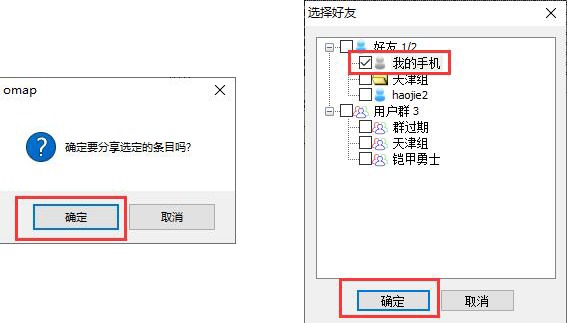 點(diǎn)擊【確定】,勾選【我的手機(jī)】(如果要分享給好友,請勾選好友),點(diǎn)擊【確定】,即可。