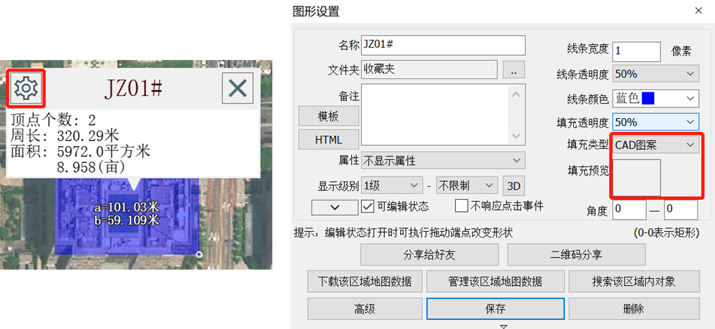 在地圖上,點(diǎn)擊圖形,進(jìn)入[圖形設(shè)置]對話框。
