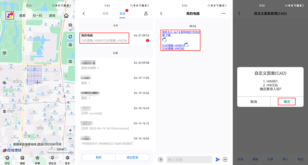 下載剛發(fā)送的CAD圖案,然后再點(diǎn)擊這條消息。系統(tǒng)會提示您是否導(dǎo)入,您點(diǎn)擊【確定】,即可。