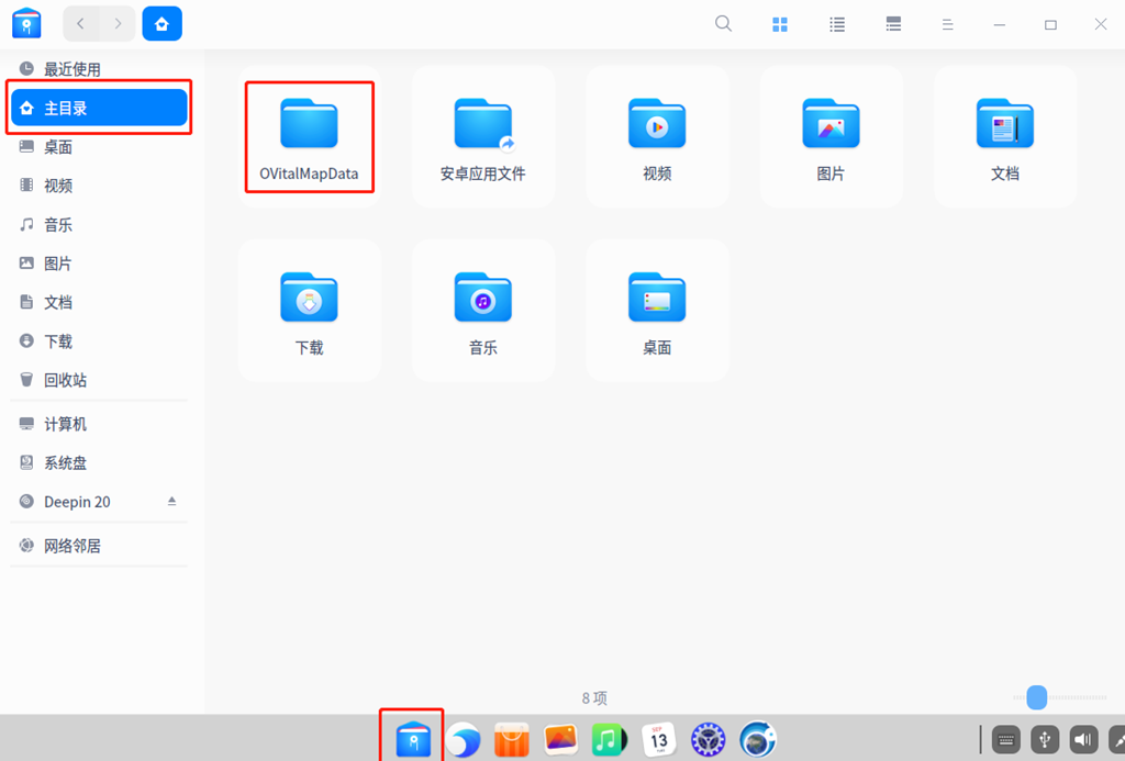 在電腦桌面上,點擊【文件管理器】→【主目錄】→【OvitalMapData】,即可進(jìn)入奧維安裝目錄。