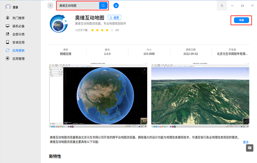您也可以在應(yīng)用商店,搜索【奧維互動地圖】,點擊【安裝】即可。