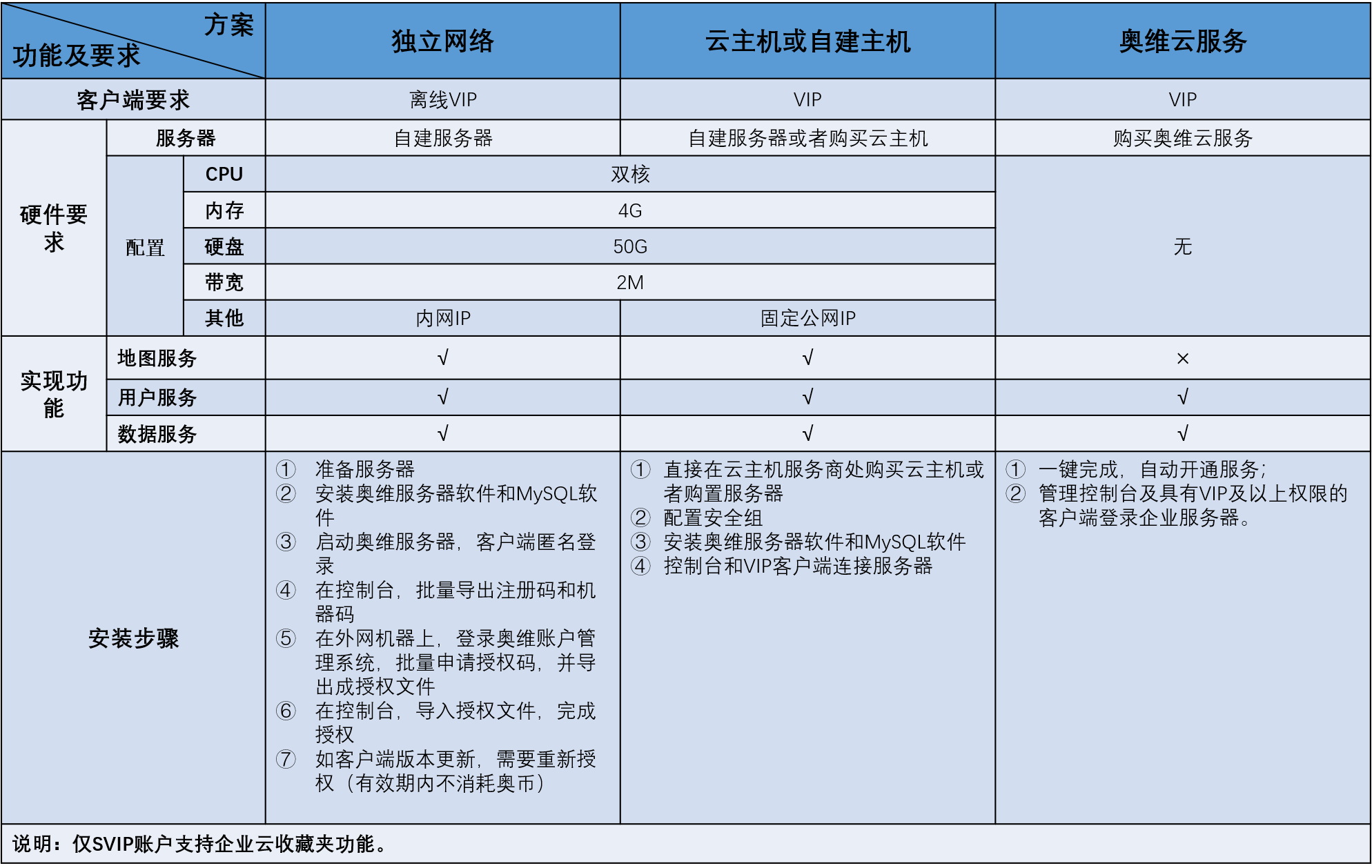 奧維互動(dòng)地圖企業(yè)服務(wù)器有三種部署方式,分別是內(nèi)網(wǎng)部署、云主機(jī)以及云服務(wù)。內(nèi)網(wǎng)部署指服務(wù)器可部署于與互聯(lián)網(wǎng)隔離的獨(dú)立網(wǎng)絡(luò)中(內(nèi)外網(wǎng)隔離),用戶(hù)的網(wǎng)絡(luò)安全性很高;云主機(jī)部署指用戶(hù)通過(guò)阿里、騰訊、百度等云主機(jī)廠商購(gòu)買(mǎi)云主機(jī),下載奧維服務(wù)器軟件,自行完成安裝,用戶(hù)自行管理服務(wù),此方式部署用戶(hù)對(duì)服務(wù)器具備完全的控制權(quán),靈活性高;云服務(wù)指用戶(hù)直接從官網(wǎng)上購(gòu)買(mǎi)奧維的企業(yè)云服務(wù),無(wú)須安裝軟件,一鍵完成。